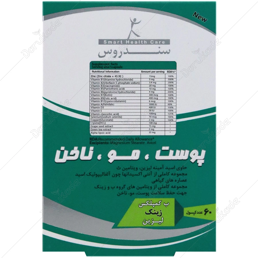 با افزایش سن از یک سو و تغییرات هورمونی از سوی دیگر میزان ساخت کلاژن و الاستین در بدن کاهش می یابد . از طرف دیگر عوامل آسیب رسان دیگری نظیر آفتاب ، آلودگی ، دود سیگار ، الکل ، استرس ، بی خوابی و ... با تولید رادیکال های آزاد در بدن سبب تخریب و شکسته شدن رشته های کلاژن و الاستین می شوند و به این ترتیب علائم پیری به شکل چروک و افتادگی بروز می کند ، بنابراین برای کند کردن روند پیر شدن پوست باید هم به ساخت بیشتر کلاژن و الاستین کمک کرد و هم از فعالیت رادیکال های آزاد جلوگیری نمود. در نتیجه برای داشتن پوستی جوان ، سالم ، مرطوب و شاداب باید در انتخاب آنچه می خوریم دقت نماییم و از آنجا که شاید تامین مواد مغذی در رژیم روزانه کافی نباشد می توان از مکمل های مناسب کمک گرفت. همچنین استفاده از مکمل ها در کنار تغذیه صحیح می تواند به تقویت و رشد مو کمک کند. مکمل سندروس با داشتن انواع ویتامین ها بخصوص ویتامین های گروه B ، املاح مختلف به ویژه زینک به میزان 15 میلی گرم ، اسید آمینه لایزین و عصاره های گیاهی آنتی اکسیدان ، تاثیر زیادی در حفظ جوانی و شادابی پوست و تقویت و رشد مو دارد.