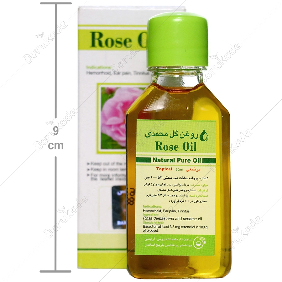 استاندارد شده بر اساس وجود حداقل 3/3 میلی گرم سیترونلول در 100 گرم فرآورده آثار درمانی: در متون طب سنتی به صورت قطره گوشی برای تسکین درد و صدای گوش و مالیدن آن به مقعد جهت درمان بواسیر مفید است. همچنین مالیدن مخلوط روغن گل محمدی با سرکه به پیشانی برای تسکین سردرد موثر است.