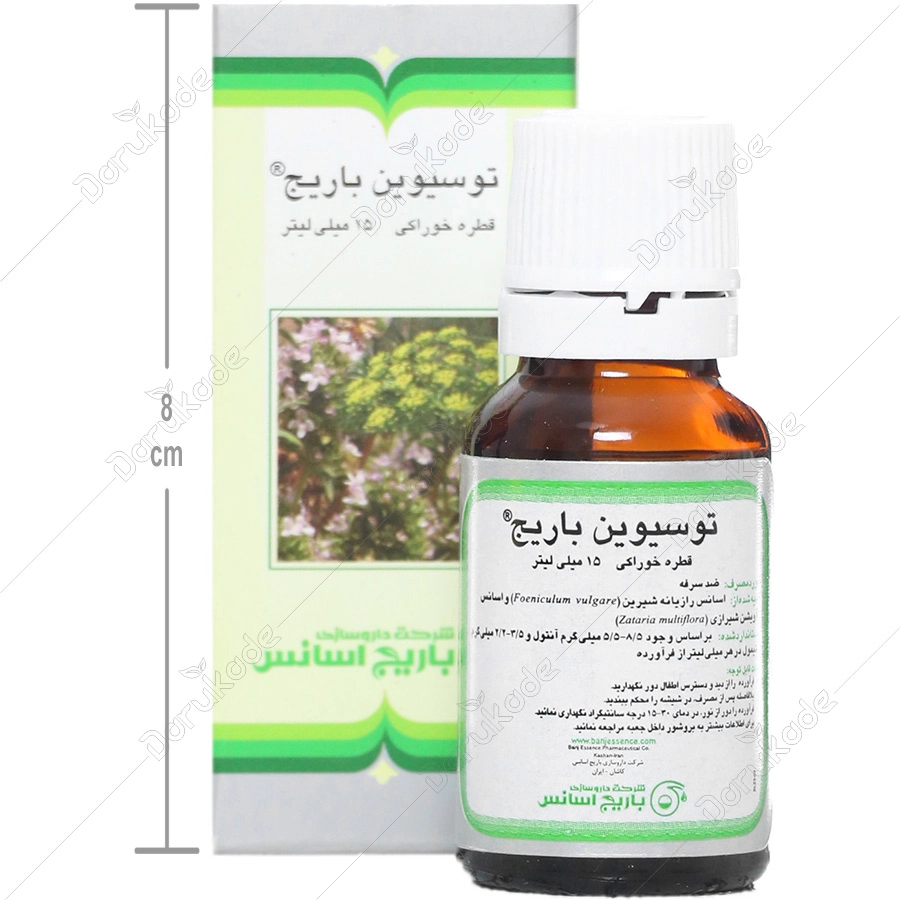 نکات قابل توصیه: در صورت بروز واکنشهای حساسیتی، مصرف دارو متوقف و با پزشک مشورت شود. همانند سایر داروها ، قطره توسیوین را از دسترس اطفال دور نگهدارید.