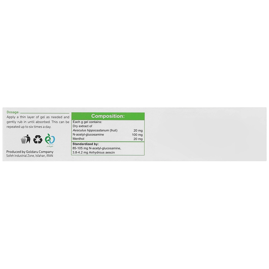 هر 30 گرم ژل فیتوگلوکزامین حاوی 100 میلی گرم ان-استیل گلوگزآمین، 20 میلی گرم عصاره خشک شاه بلوط هندی و 20 میلی گرم پودر منتول