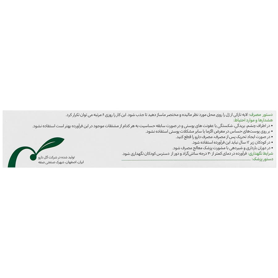 لایه نازکی از ژل را روی محل مورد نظر مالیده و مختصر ماساژ دهید تا جذب شود. این کار را روزی 6 مرتبه می توان تکرار کرد.