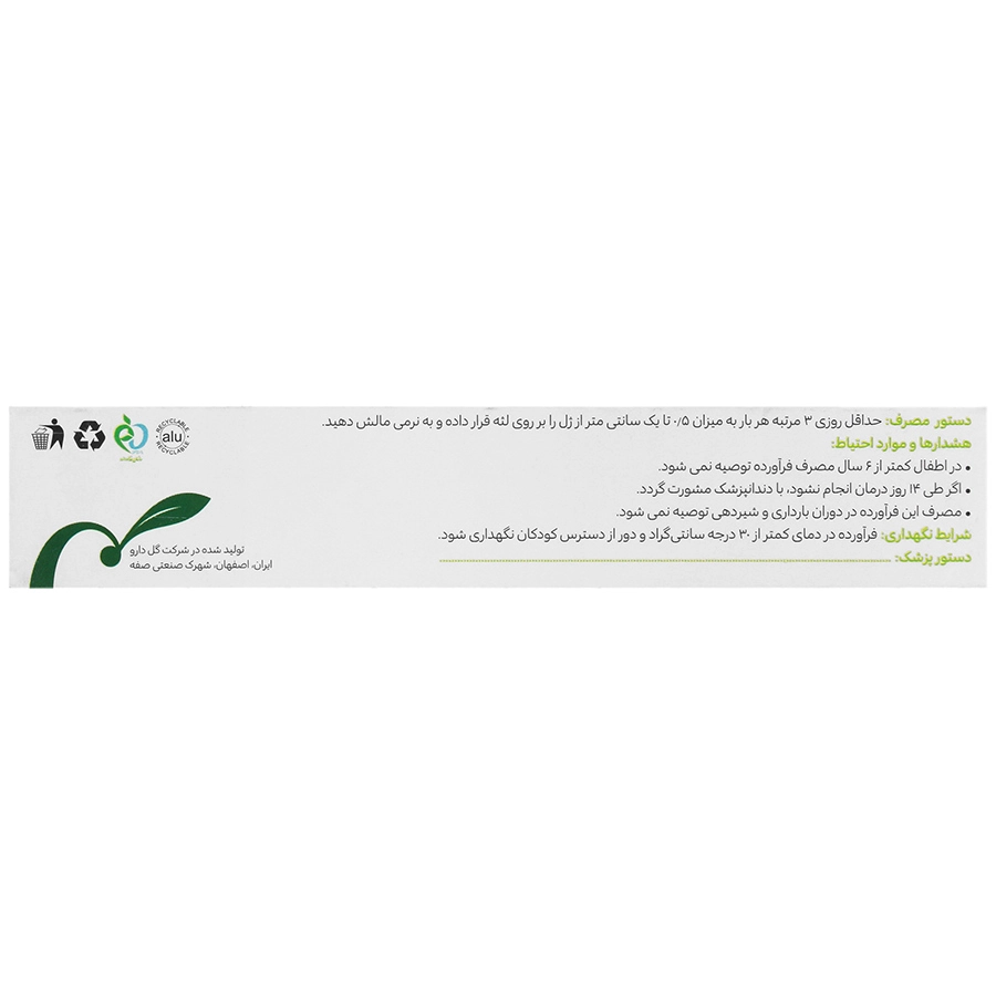 حداقل روزی 3 مرتبه هر بار به میزان 0.5 تا یک سانتی متر از ژل را بر روی لثه قرار داده و به نرمی مالش دهید.