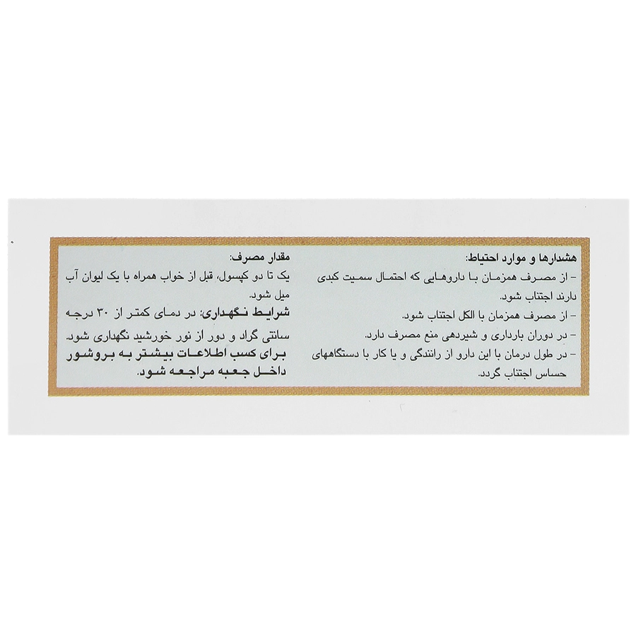 روزی یک تا دو کپسول یک ساعت قبل از خواب و همراه با یک لیوان آب میل شود.