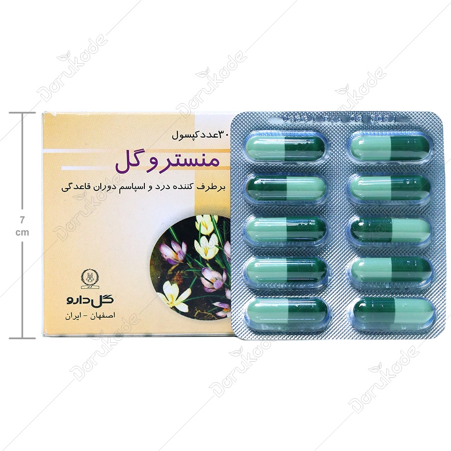 - مواد مؤثره : آنتول، استراگول، متیل کاو یکول، آپی ئین، آپی ژنین، میریستین، لیمونن، سینئول، سافرانال، کروسین و پیکرو کروسین - آثار فارماکولوژی : اثرات ضد اسپاسم و ضد دردهای اسپاسمی اسانس های فرار (بخشی از مواد مؤثره منستروگل) از قدیم ترین ایام به اثبات رسیده و مطالعات گسترده فارماکولوژیکی و بالینی این امر را تائید نموده اند. مطالعات بالینی متعدد اثر سینرژیسم مخلوط اسانس ها را به اثبات رسانده است. آنتول موجود در میوه انیسون عامل اصلی خاصیت ضد اسپاسم این دارو محسوب می شود. نحوه اثر آن روی عضلات صاف مربوط به اثر متابولیسم کلسیم است و تونیسیته و شدت انقباضات دستگاه گوارش را کاهش می دهد. این ماده از لحاظ ساختمان شیمیائی نزدیکی بسیاری به کاتکول آمین های آدرنالین، نور آدرنالین ودوپامین دارد و دیمرهای آن شباهت بسیاری به عوامل استروژنیک استیلبن واستیل بسترول دارند. فلاونوئیدهای آپی ژنین، آپی ئین وایزوکورسیترین و لیمونن و سلنین موجود درتخم کرفس در آزمایشات روی موش اثرات بارز ضد اسپاسمی و آرام بخش از خود ظاهر نموده اند. این اثرات در آزمایشات مکرر بالینی هم به اثبات رسیده است. افزون بر این در اکثر منابع گیاه درمانی جهانی نوین، گیاهان فوق الذکر به عنوان ضد دردهای رحمی و قاعده آور توصیه شده اند. مطالعات جدید اثرات ضد سرطانی و ضد آرتریت زعفران موجود در فرمولاسیون این دارو را به اثبات رسانده که آن را عمدتاً به خاصیت بسیار بالای آنتی اکسیدانی این گیاه نسبت می دهند. - عوارض جانبی : در افراد حساس به گیاهان داروئی ممکن است موجب بروز عوارض مختصر آلرژیک شود. - تداخلات داروئی : با توجه به حضور عصاره رازیانه که موجب القای سیستم آنزیمی سیتوکروم P450 می شود احتمال تداخل با داروهایی که متابولیسم آنها کبدی و از طریق سیستم فوق است باید در نظر گرفته شود. (برگرفته از سایت www.goldaru-co.com)
