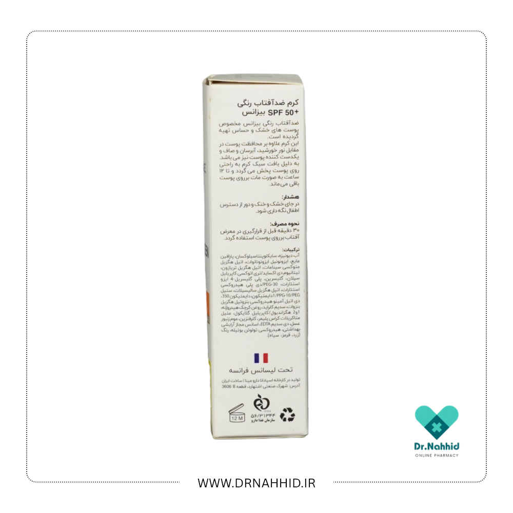 • کرم ضد آفتاب بیزانس برای پوست خشک دارای فاکتور محافظتی spf50+