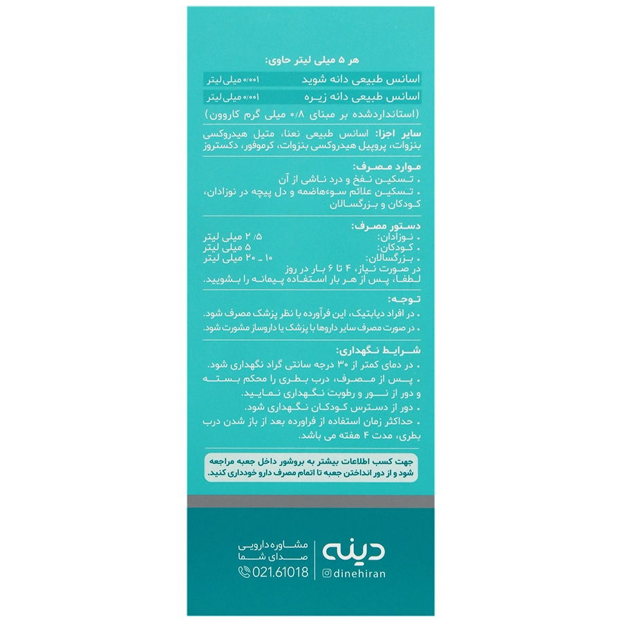 حاوی 0.001 میلی لیتر اسانس طبیعی دانه شوید، 0.001 میلی لیتر اسانس طبیعی دانه زیره