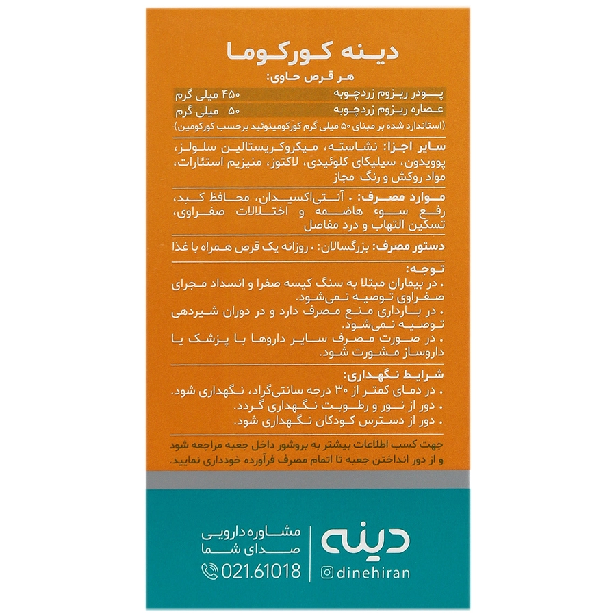 حاوی پودر ریزوم زردچوبه، عصاره ریزوم زردچوبه (استاندارد شده بر مبنای 50 میلی گرم کورکومین)