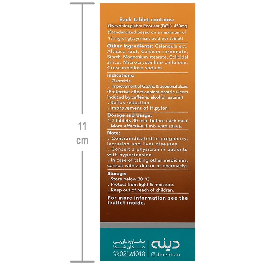 هر قرص حاوی عصاره دگلیسیریزینه شیرین بیان 450 میلی گرم