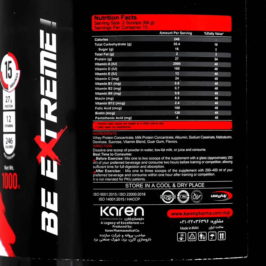 حاوی 42% پروتئین از مخلوط پروتئین های شیر و whey