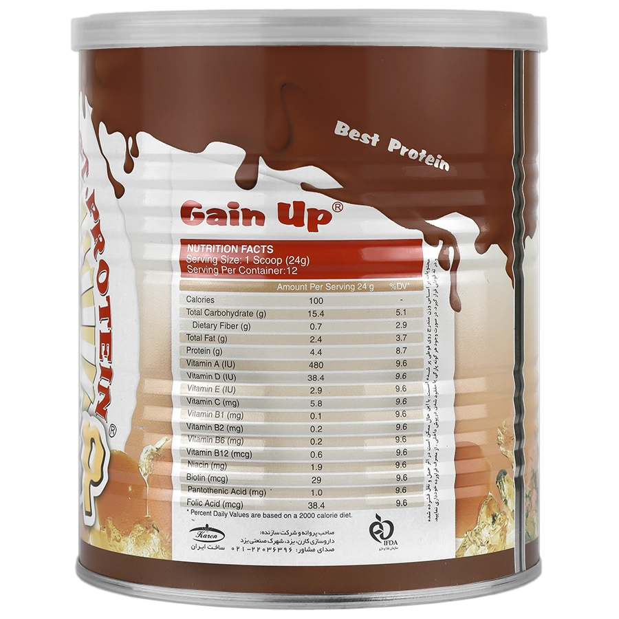 نکات: در صورت حساسیت به هر یک از اجزای این محصول از مصرف آن خودداری نموده و با پزشک مشورت نمایید. مقادیر مصرف بر حسب وزن، جنس و طول دوره مصرف رعایت شود. در صورت استفاده از این مکمل مقدار بیشتری آب در طول روز بنوشید تا مواد زاید حاصل از متابولیسم پروتئین ها از بدن دفع شود. به این منظور باید به ازای مصرف هر پیمانه از گین آپ یک لیوان آب به مصرف روزانه اضافه کنید. مصرف این فرآورده در افرادی که داروهای آنتی پیرین وتئوفیلین استفاده می کنند، مجاز نمی باشد. این محصول حاوی فنیل آلانین می باشد؛ بنابراین در بیماران مبتلا به فنیل کتونوری نباید مصرف شود. در افراد مبتلا به نارسائی کلیوی این مکمل ها مصرف نشود.