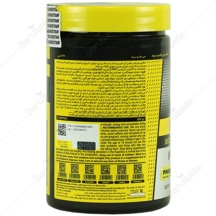 • پمپ C5 ژن استار، حاوی ویتامین سی و خواص آنتی اکسیدانی برای خنثی کردن رادیکال های آزاد حاصل از تمرین