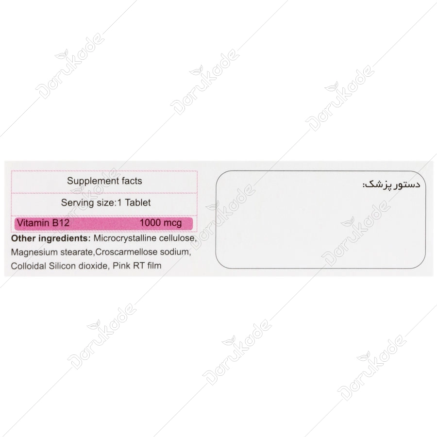حاوی 1000 میکروگرم ویتامین ب12 در هر قرص