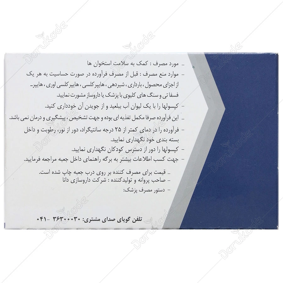 هر کپسول ژلاتینی نرم حاوی 500 میلی گرم کلسیم کربنات و 600 واحد ویتامین د3