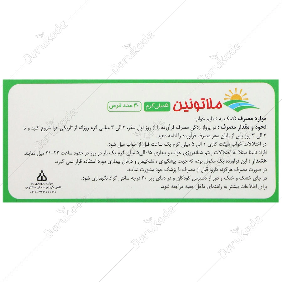 حاوی 5 میلی گرم ملاتونین در هر قرص