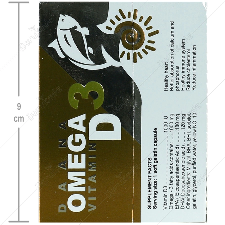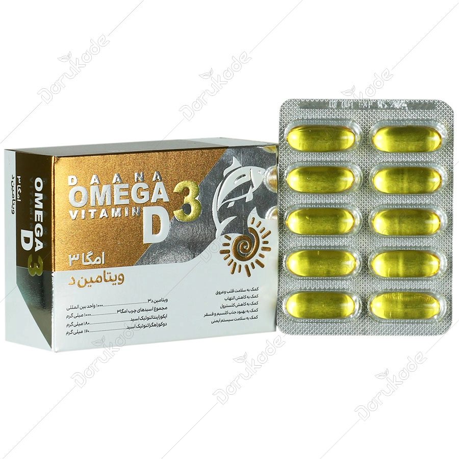 حاوی ویتامین د3 و مجموع اسیدهای چرب امگا 3 (ایکوزاپتنانوئیک اسید ودوکوزاهگزانوئیک اسید)