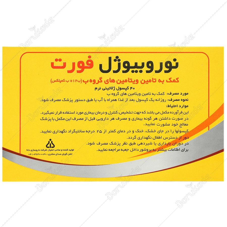 کپسول ژلاتینی نرم نوروبیوژل فورت با دارا بودن دوز مناسبی از ویتامین های ب1، ب2، ب3، ب5، ب6 و ب 12 نیاز بدن به این ویتامین هارا تامین می کند.
