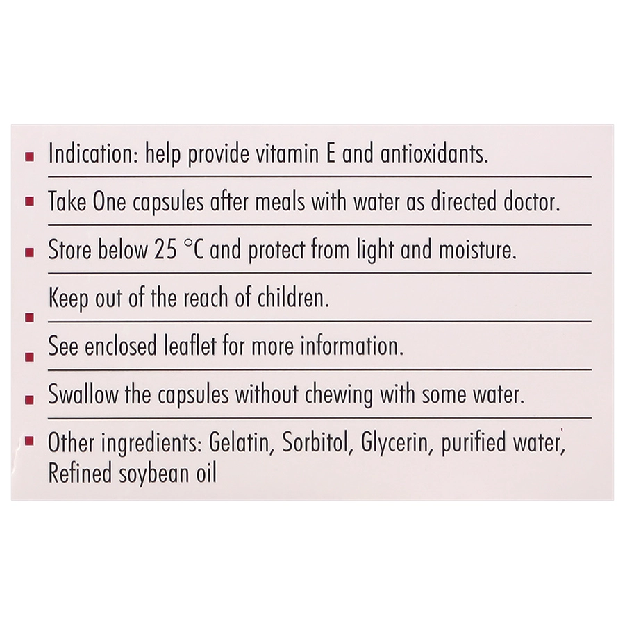 موارد منع مصرف: - در صورت وجود حساسیت به ویتامین E و سایر اجزای آن، غذاها و مواد محافظ.