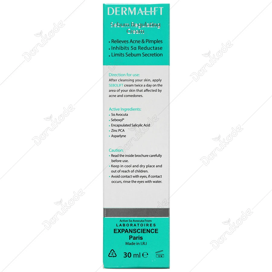 کرم کنترل چربی پوست سبولیفت درمالیفت با کاهش چربی و متعادل کردن آن در سطح پوست سبب درمان و جلوگیری از ایجاد جوش و آکنه جدید میشود. کرم پوست چرب سبولیفت درمالیفت حاوی آسپارلین، سبوکسیل، اسید سالیسیلیک و زینک است که باعث تنظیم ترشح چربی و جلوگیری از بروز جوش های سرسیاه و سر سفید در پوست میشود. شرکت ژرف کوشا پس از سال ها تحقیق و کسب تجربه در زمینه فرمولاسیون های پیشرفته و با همکاری دو کمپانی اروپایی یعنی اکسپنساینس و سولابیا فرانسه موفق به تولید کرم ضد جوش و کنترل چربی پوست سبولیفت گردیده است.