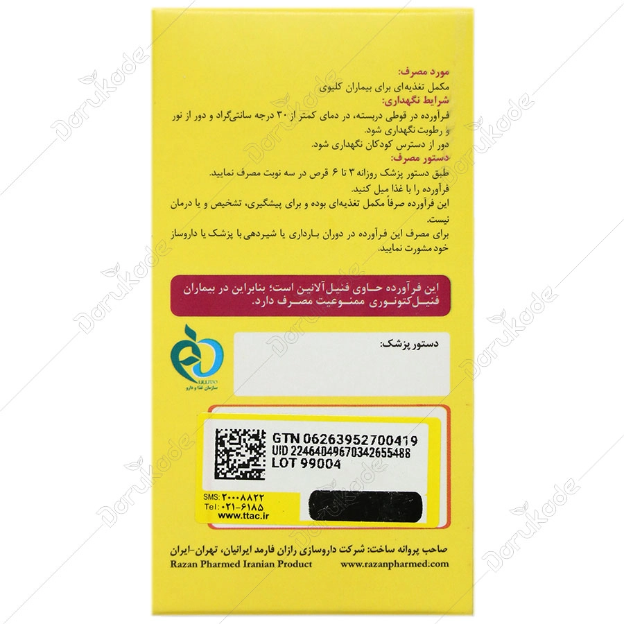 این فرآورده صرفا مکمل تغذیه ای بوده و برای پیشگیری، تشخیص و یا درمان نیست.