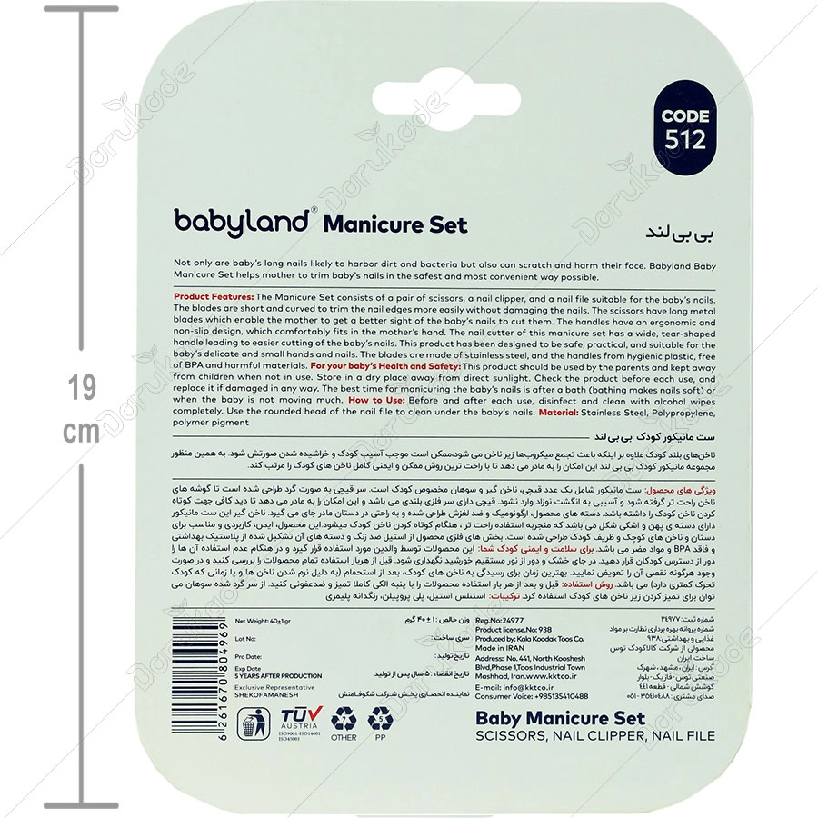 ناخن های بلند کودک نه تنها باعث آسیب رسیدن به خودش و خراشیدن صورتش خواهد شد بلکه باعث تجمع میکروب ها در زیر ناخن میشود. به همین منظور مجموعه مانیکور کودک بی بی لند این مکان را به مادر می دهد تا با بیش ترین ایمنی و راحت ترین روش ممکن ناخن های کودک را مرتب کند.