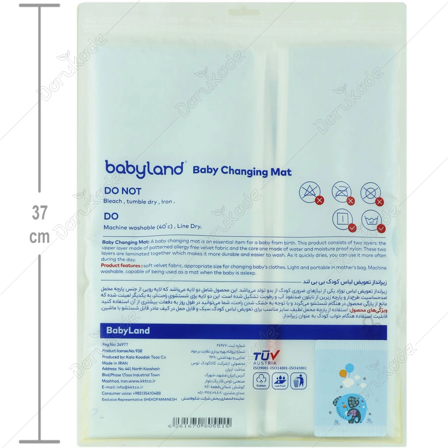 زیرانداز تعویض لباس نوزاد یکی از نیازهای ضروری کودک از بدو تولد می باشد. این محصول شامل دو لایه می باشد که لایه رویی از جنس پارچه مخمل ضد حساسیت طرحدار و پارچه زیرین از نایلئن ضد نفوذ آب و رطوبت تشکیل شده است. این دولایه برای شستشوی راحت تر، به یکدیگر لمینیت شده که مانع از پارگی محصول در هنگام شستشو می گردد و با توجه به خشک شدن راحت، شما میتوانید در طول روز به دفعات بیشتری از آن استفاده کنید.