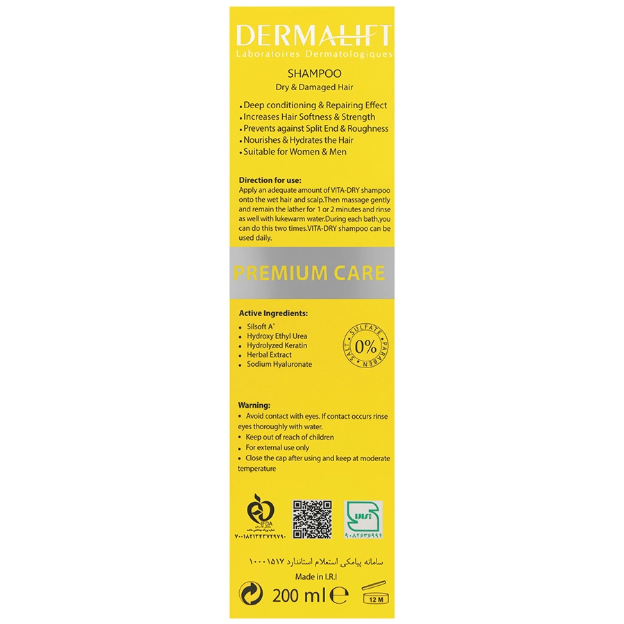 شامپو ویتا درای با عصاره گیاه بامبو و بابونه باعث تقویت و تغذیه عمیق مو ها شده و با ترکیبات کراتین خود وز، خشکی و شکنندگی مو را از بین می برد. همچنین سدیم هیالورونات موجود در این شامپو رطوبت مناسب ساقه های مو را تامین نمود و PH پوست سر را تنظیم می کند.