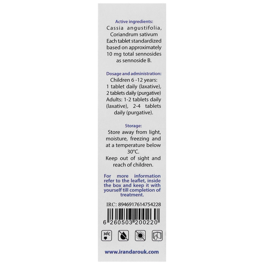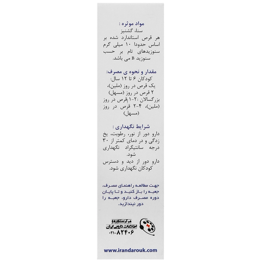 هر قرص استاندارد شده بر اساس حدودا ۱۰ میلی گرم سنوزیدهای تام بر حسب سنوزید B