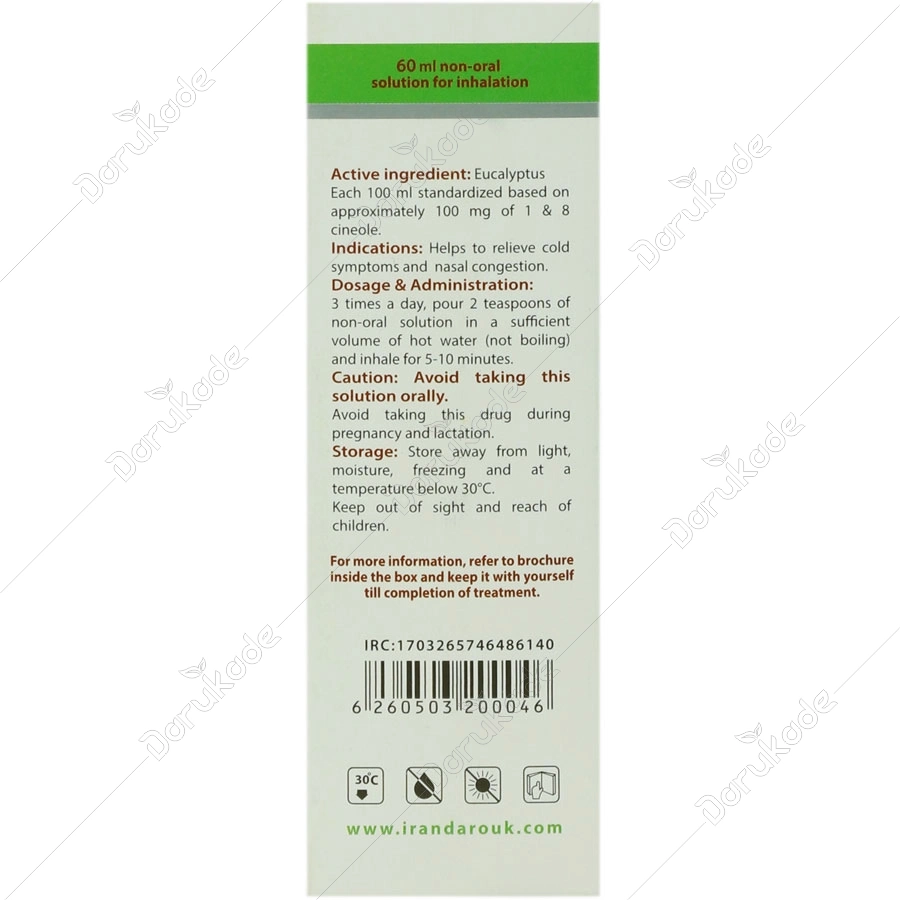 اکالیپتوس با مهار تولید متابولیت های اسید آراشیدونیک و مهار تولید سیتوکین ها، دارای خاصیت ضد التهاب و ضد احتقان می باشد. این محصول همچنین دارای اثرات ضد میکروبی، ضد قارچی و ضد ویروسی بوده که کمک شایانی به بهبود علائم سرماخوردگی می نماید.