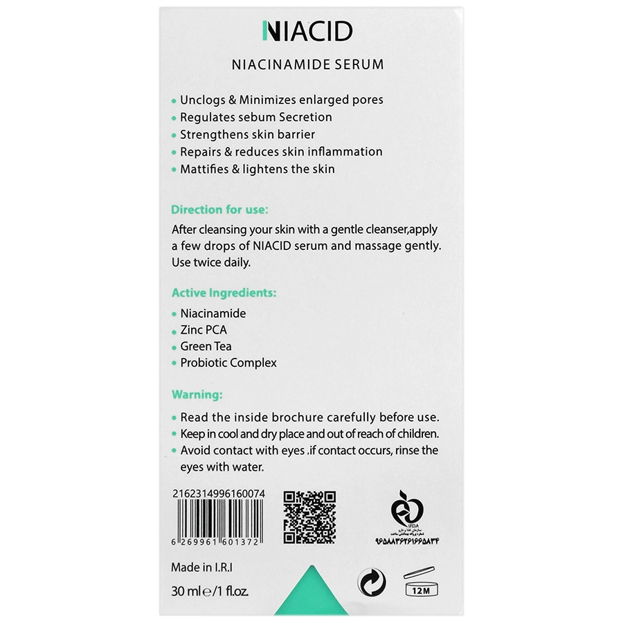 نیاسینامید یا ویتامین ب3 علاوه بر اثرات فوق یک ترکیب آنتی اکسیدان و روشن کننده قوی می باشد. این محصول علاوه بر ترکیب فوق، دارای کمپلکس پروبیوتیک بوده که ضمن تقویت رشد باکتری های مفید پوست، مانع از تاثیر باکتری های مضر می گردد.