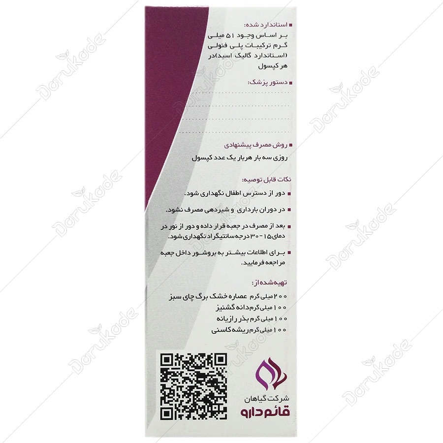 استاندارد شده براساس وجود 51 میلی گرم ترکیبات پلی فنولی (استاندارد گالیک اسید)