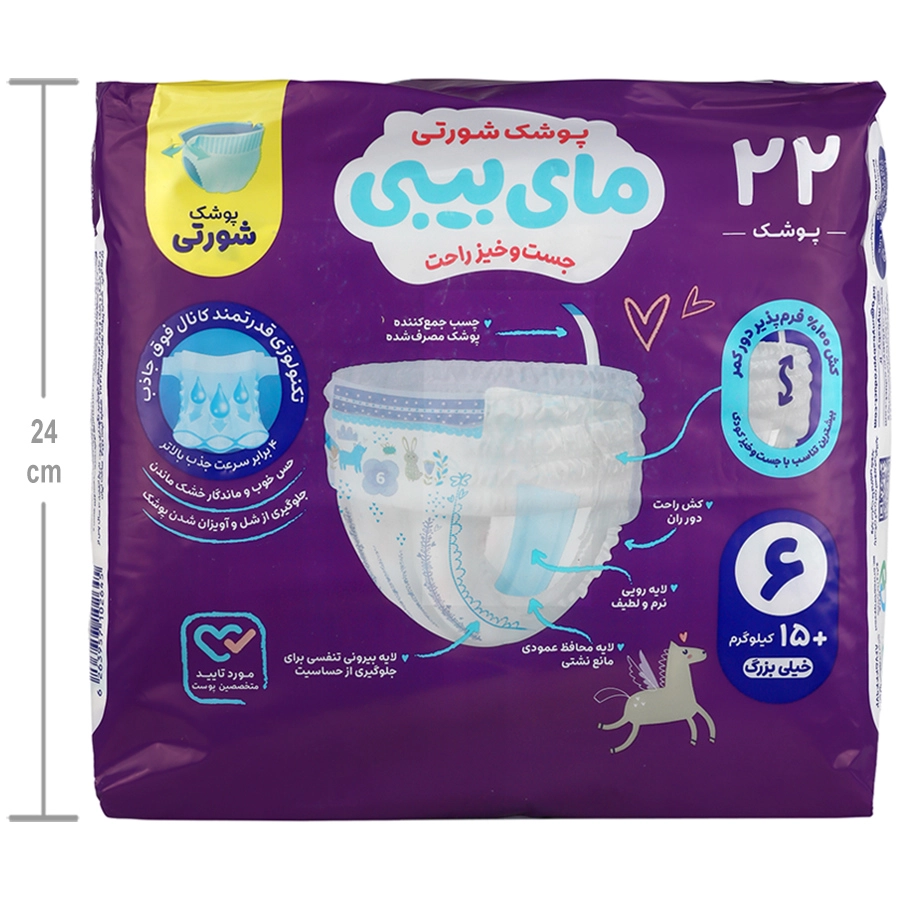 پاهای کودک را یکی یکی در پوشک شورتی مایبیبی قرار دهید و پوشک را تا کمر بالا بکشید.