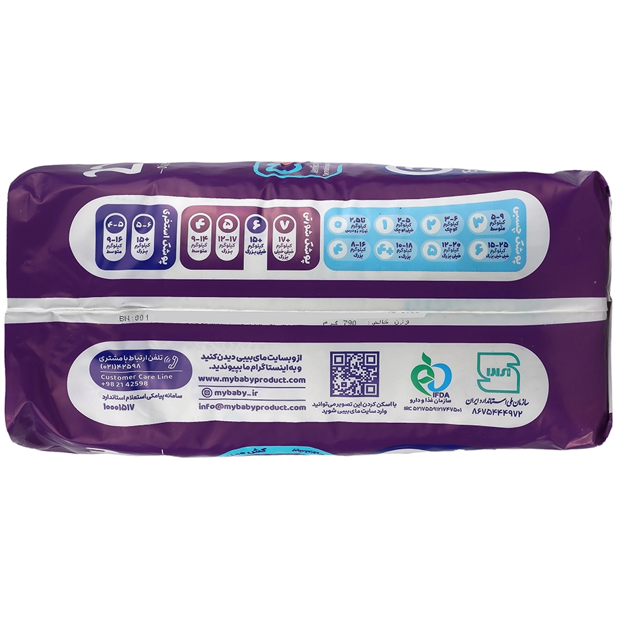 **پوشک شورتی کانالدار مایبیبی را باید طوری به پای کودک بپوشانید که نوار چسب آبی آن در پشت کودک قرار گیرد.