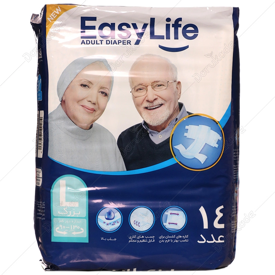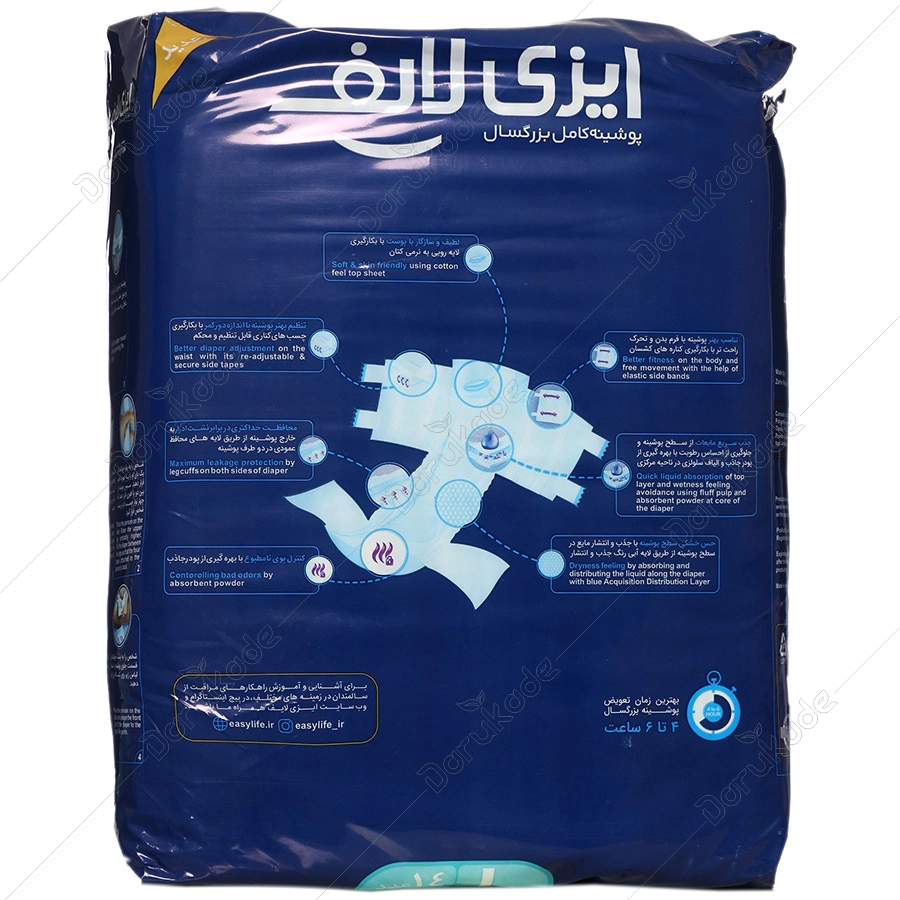 • پوشک ایزی لایف سایز بزرگ حاوی 14 عدد پوشینه بزرگسال سایز بزرگ