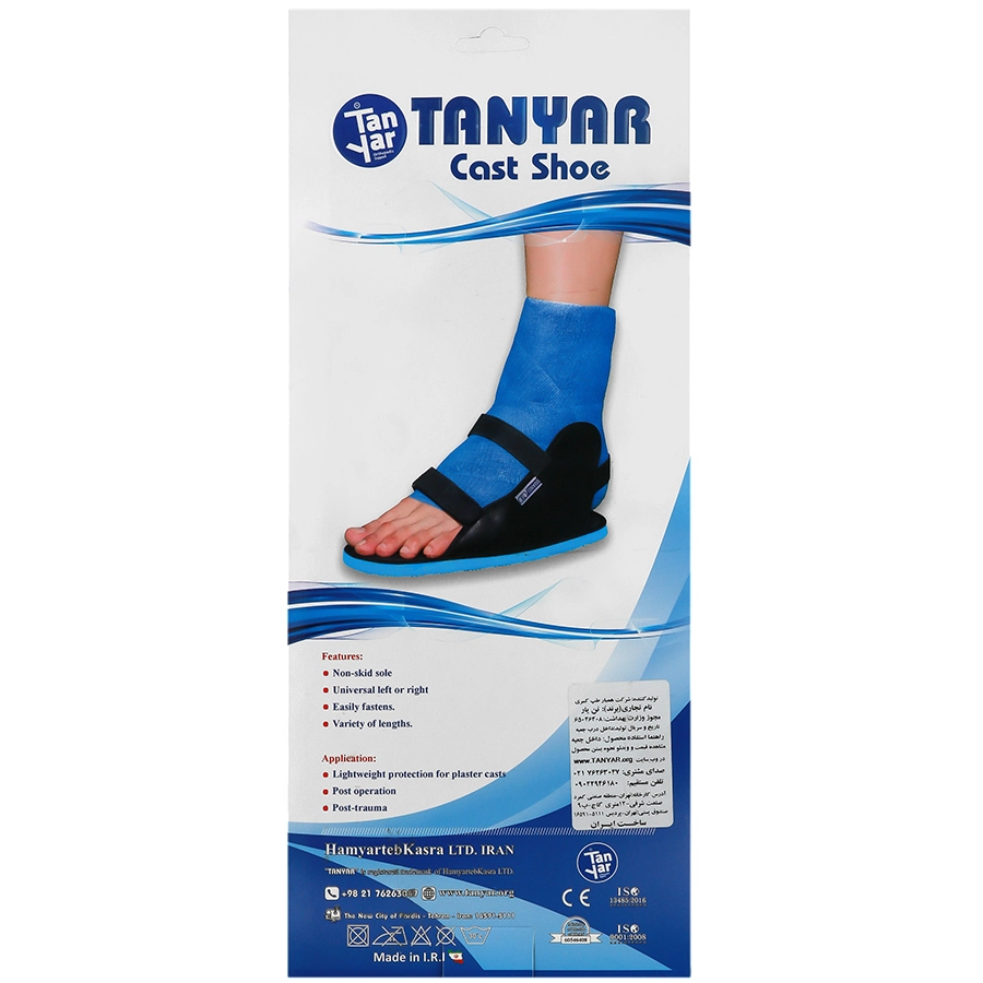 این کفش از یک کفی مخصوص فومی ساخته شده که به وسیله ی دو چسب محکم، سفت می شود و مانع از کثیف شدن گچ و ضربه خوردن به پای فرد آسیب دیده می شود.