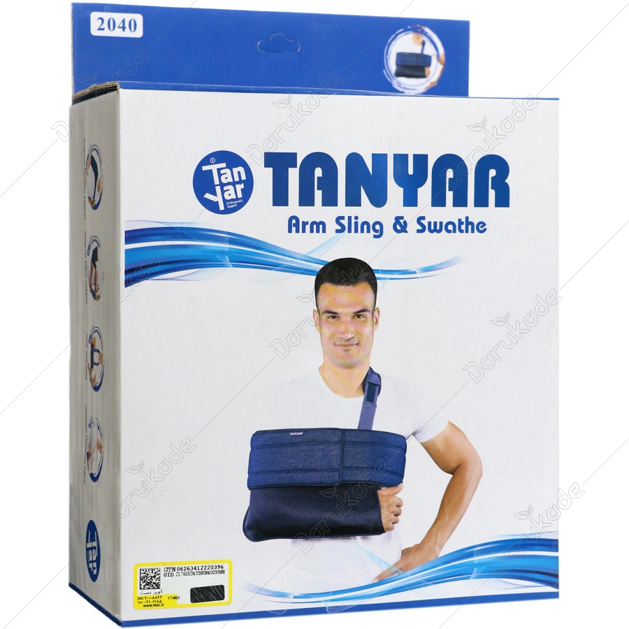 ساعد را درون اسلینگ قرار دهید. استرپ را بالای شانه بکشید. انتهای استرپ را از درون حلقه بگذرانید. طول استرپ شانه ای را تنظیم کنید تا اینکه مفصل آرنج در زاویه 90 درجه استراحت کند، سپس ولکرو را محکم ببندید. در محصول آویز دست با بازوبند الحاقی، بازوبند را مطابق تصویر جعبه به شکلی ببندید که مفصل شانه را کاملا بی حرکت کند. - مدت زمان استفاده از محصول: در صورتی که با تجویز پزشک ارتوپد از این ارتز استفاده مینمایید، با توجه به نظر ایشان عمل نمایید. در غیر این صورت از این محصول به مدت حداقل 8 هفته معادل 2 ماه استفاده نمایید.