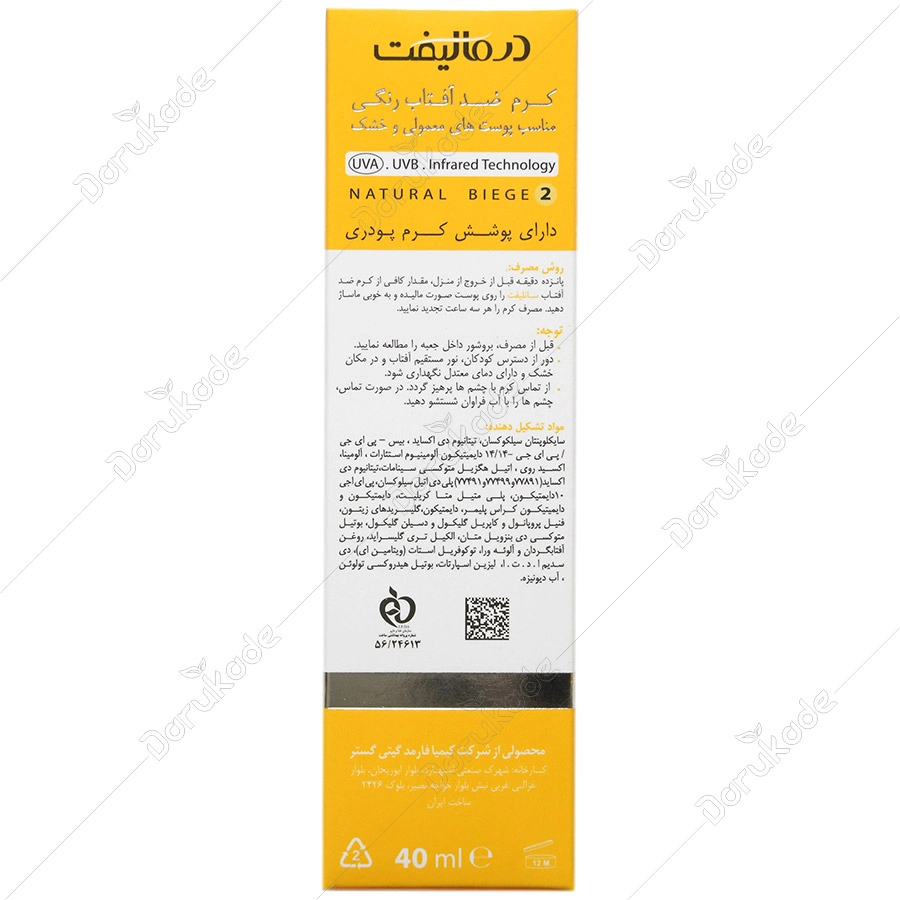 • ضد آفتاب درمالیفت رنگی برای پوست خشک، دارای اثر مقاومتی بالا در برابر تعریق و شستشو