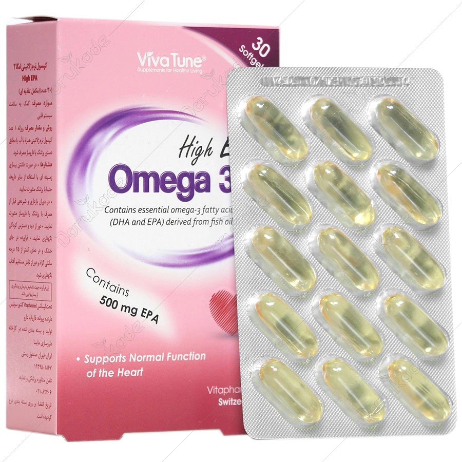 کپسول نرم ژلاتینی امگا3 (High DHA High DHA Omega 3) حاوی اسیدهای چرب امگا 3 ضروری DHA و EPA حاصل از روغن ماهی است. این محصول سطح بالایی از DHA را فراهم می کند که به حفظ بینایی طبیعی و عملکرد مغز کمک می کند. DHA و EPA در عملکرد طبیعی قلب نقش دارند.