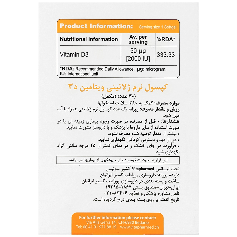 هر سافت ژل حاوی 50 میکروگرم معادل 2000 واحد ویتامین د3