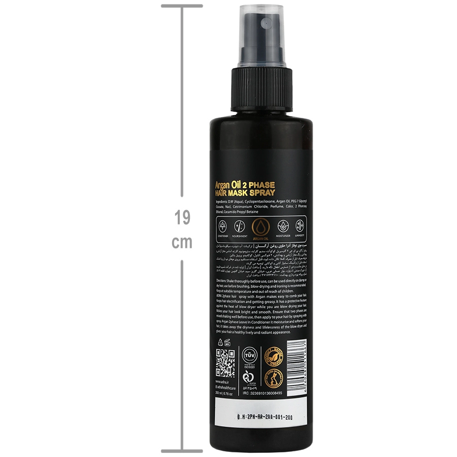 ماسک مو دو فاز آدرا، حاوی روغن آرگان می باشد که این ماده بافت موهای خشک و آسیب دیده را به صورت عمقی ترمیم، تغذیه و می کند و نرمی فوق العاده ای به موهایتان می بخشد، بدون اینکه باعث چرب شدن آن ها شود. این ماسک مو بعد از استفاده مثل یک لایه محافظ روی موها می نشیند و از آن ها در برابر حرارت سشوار، اتو و سایر دستگاه های حرارتی محافظت می کند، همچنین جلوی شکنندگی و موخوره های ناشی از اتو و سشوار را هم می گیرد.