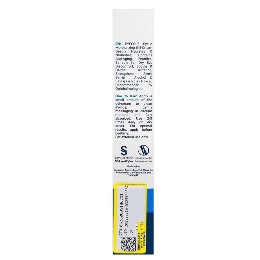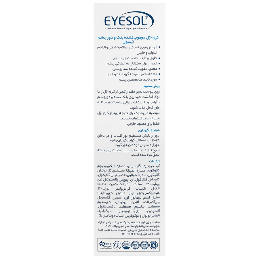 روی پوست تمیز، مقدار کمی از کرم ژل را با نوک انگشت خود روی پلک بسته و دور چشم به آرامی و با حرکات دورانی ماساژ دهید تا به طور کامل جذب شود.