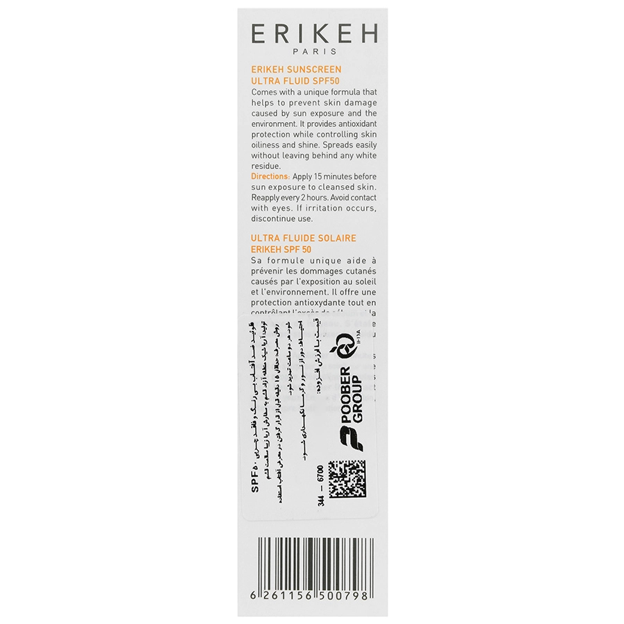 • فلوئید ضد آفتاب اریکه SPF50 مناسب پوست چرب و مختلط، محافظ موثر پوست
