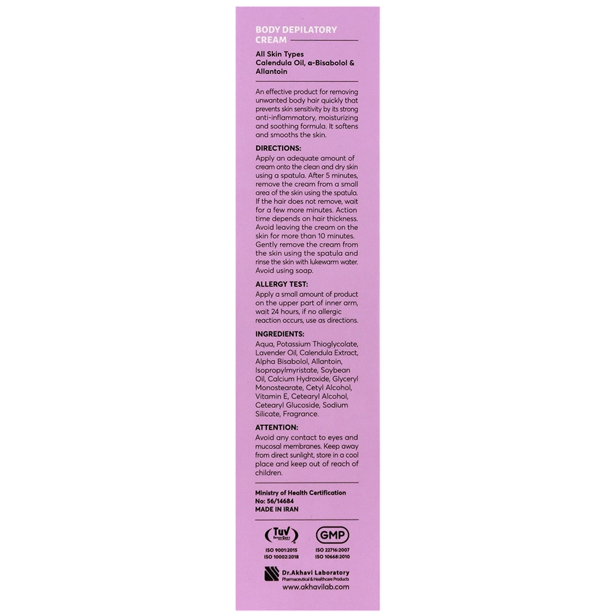 مقدار کافی از کرم را به وسیله کاردک پلاستیکی درون جعبه روی پوست کاملاً تمیز و خشک طوری قرار دهید که روی موها را بپوشاند. پس از گذشت 5 دقیقه کرم را به وسیله کاردک از سطح کوچکی از پوست بردارید. در صورتی که مو به راحتی جدا نشد چند دقیقه دیگر صبر کنید. زمان اثرگذاری بستگی به ضخامت موها دارد. از نگهداری کرم بیش از 10 دقیقه بر سطح پوست بپرهیزید. کرم را به وسیله کاردک از روی پوست به آرامی بردارید و پوست را با آب ولرم بشویید. از مصرف صابون بپرهیزید.