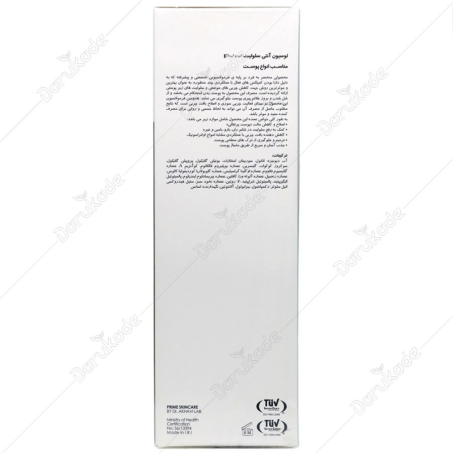 مقداری از لوسیون را بر روی پوست پاکیزه نواحی دارای سلولیت، مالیده و با حرکات دورانی به آرامی ماساژ دهید تا جذب شود این عمل را 2 بار در روز تکرار نمایید