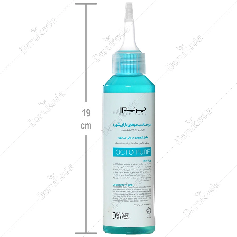 سرم مناسب موهای دارای شوره پریم به عنوان یک محصول مکمل در درمان شوره سر، به کاهش چشمگیر انواع شوره سر و جلوگیری از بازگشت مجدد آن کمک نموده و ضمن کنترل خارش و التهاب پوست سر ناشی از شوره منجر به تنظیم پوسته ریزی و رطوبت رسانی به کف سر می گردد. مواد موثر پیروکتون اولامین و اسید سالیسیلیک منجر به رفع شوره و کاهش سرعت پوسته ریزی می گردند و عصاره عناب در نقش یک ترکیب طبیعی موثر علیه شوره و خارش سلامت و درخشندگی را به موها باز می گرداند.