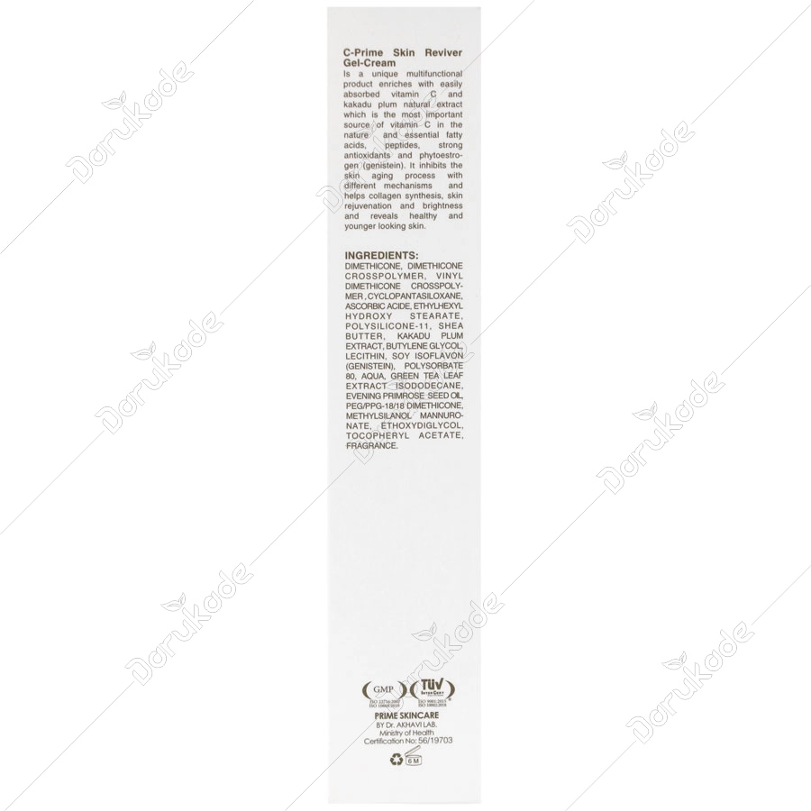 ژل کرم برطرف کننده چروک و روشن کننده پوست حاوی ویتامین C پریم تولید شده در لابراتور دکتر اخوی محصولی نوین و چند منظوره حاوی آسکوربیک اسید خالص، محصور در یک پایه آلی-سیلیکونی با جذب پوستی سریع و فوق العاده و عصاره طبیعی آلوی کاکادو (مهمترین منبع ویتامین C در طبیعت) به همراه اسیدهای چرب ضروری (EFA)، پپتیدها، آنتی اکسیدان های قوی و فیتواستروژن ها می باشد که با مکانیسم های مختلف فرآیند پیری پوست را مهار می کند و موجب سنتز کلاژن، جوانسازی و روشن شدن پوست می شود.