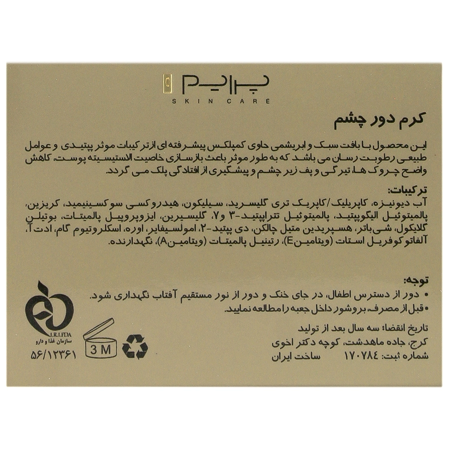 مقدار کافی از محصول را بر روی مناطقی که تیرگی، پف و یا چروک های عمیق وجود دارد، همچنین پلک ها، به صورت ضربه های ملایم و یکنواخت پخش نمایید. این محصول فاقد هرگونه ترکیبات لایه بردار و حساس به نور بوده لذا قابل استفاده در هر زمانی از شبانه روز می باشد.