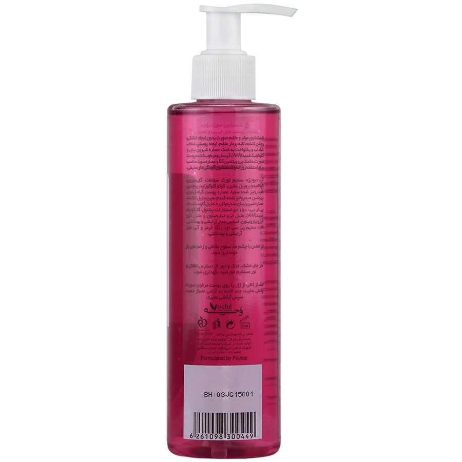مقدار کافی از ژل را روی پوست مرطوب صورت پخش کنید نمایید، چند ثانیه به آرامی ماساژ دهید، سپس آبکشی نمایید.