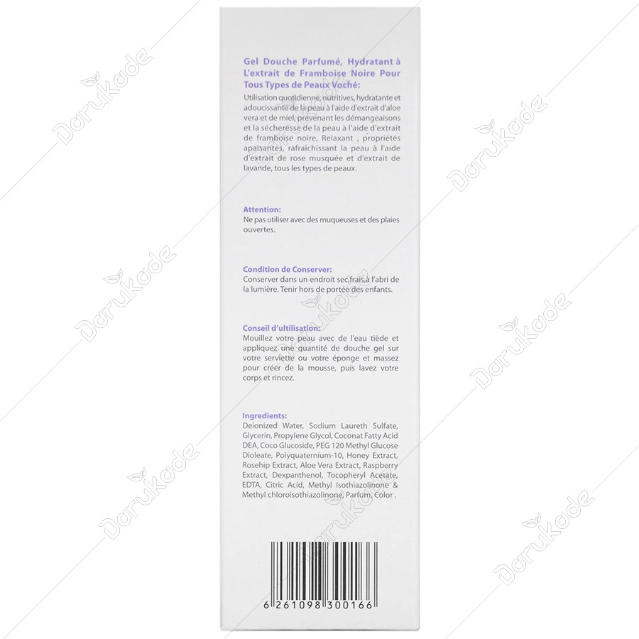 شامپو بدن مرطوب کننده تمشک سیاه وچه مناسب انواع پوست بوده و دارای قدرت کف کنندگی مناسب برای استفاده روزانه است و به کمک عصاره آلوئه ورا و عسل، پوست بدن را مرطوب و نرم میکند. در این محصول از عصاره تمشک سیاه استفاده شده است که علاوه بر خاصیت آنتی رادیکالی خود باعث جلوگیری از ایجاد خارش و خشکی پوست میشود. همچنین عصاره رز وحشی و اسطوخودوس موجود در این محصول التیام بخش بوده و باعث ایجاد طراوت و شادابی پوست میشود.
