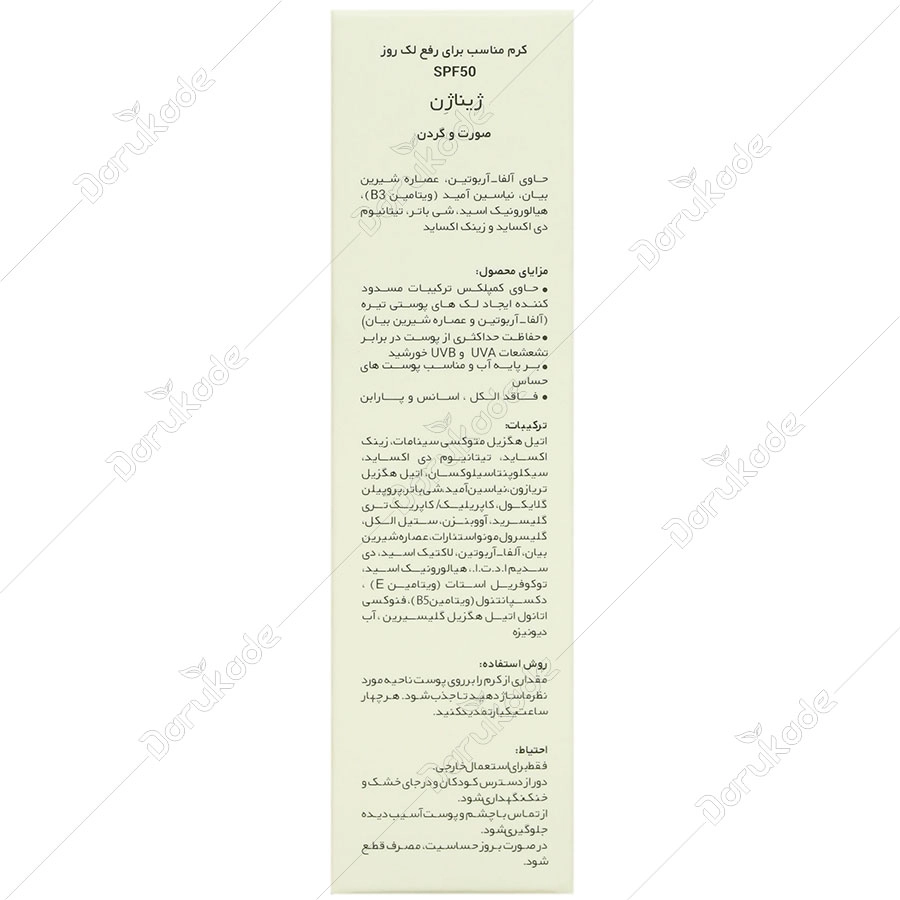 حاوی آلفا_آربوتین، عصاره شیرین بیان، نیاسین آمید(ویتامین B3)، هیالورونیک اسید، شی باتر، تیتانیوم دی اکساید و زینک اکساید
