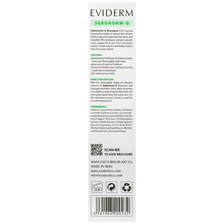 شامپو سبونورم جی با دارا بودن فرمولاسیون اختصاصی، به کاهش چربی پوست سر کمک نموده و موها را تمیز و خوش حالت می نماید. این شامپو حاوی اسید سالیسیلیک، کاپر پی سی ای، زینک پی سی ای، عصاره رزماری، عصاره گزنه می باشد و با کاهش چربی پوست و مو کمک می کند.